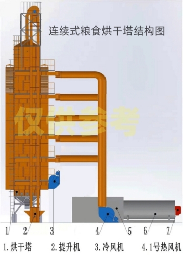 4. 提/升与输送系统:包括提/升机、输送绞龙等,负责将湿粮送入塔顶,并将干粮从塔底排出。