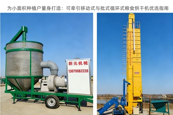 对于种植面积有限、年产粮在2到10吨的农户而言,选择一台合适、经济、实用的粮食烘干设备,是保障粮食颗粒归仓、实现效益关键环节。面对市场上多样的机型,如何做出明智的选择?本文将针对可牵引移动式与批式循环式两种主流机型,为您提供清晰的对比与选购参考。
