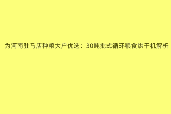 30吨批式循环粮食烘干机是助力河南驻马店种粮大户实现粮食减损增效、保障粮食品质的实用装备。合理配置与应用,将为规模化农业生产的稳健发展提供有力支撑。