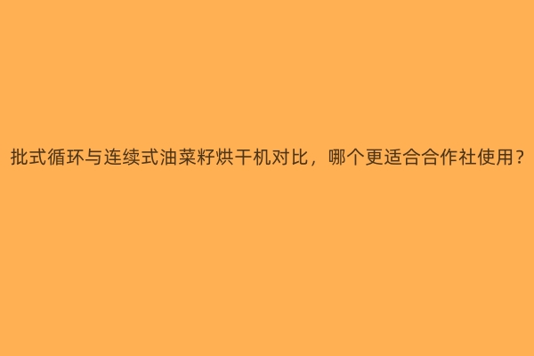 综合来看,在“批式循环与连续式油菜籽烘干机对比,哪个更适合合作社使用?”这个问题上,批式循环油菜籽烘干机在多数情况下显示出更强的匹配度。
